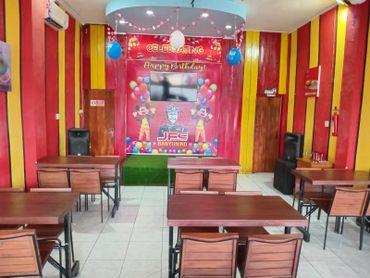 Kami juga memiliki tempat untuk mengadakan ulang tahun bagi putra putri pelanggan JFC Banyuning, dengan membeli paket yang telah kami sediakan.